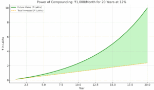 If you invest ₹1,000/month for 20 years earning 12% annually, you’ll have ₹10 lakh+ — just by being consistent!+