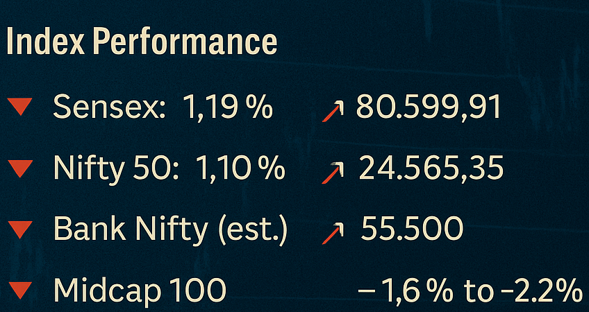 - Sensex: ↓1.19% to 80,599.91