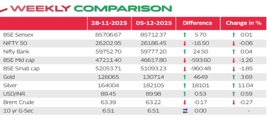 The Indian equity market witnessed a cautious trading week between 28th November and 5th December 2025. Bulls and bears continued their ongoing battle, resulting in muted index-level performance while volatility remained stock- and sector-specific.